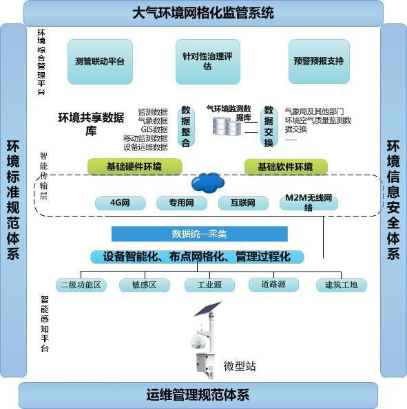 大氣污染防治網格化監控預警及決策支持系統,主要針對敏感區域、重點工業企業和建筑工地、道 路交通等多種環境監測對象,通過大密度監測網格布點,實時監控區域內主要污染物動態變化,快速捕 捉污染源的異常排放行為,做到實時預警,為精準治霾提供科學的大數據評估,以提升大氣污染防治的 監管能力和水平。